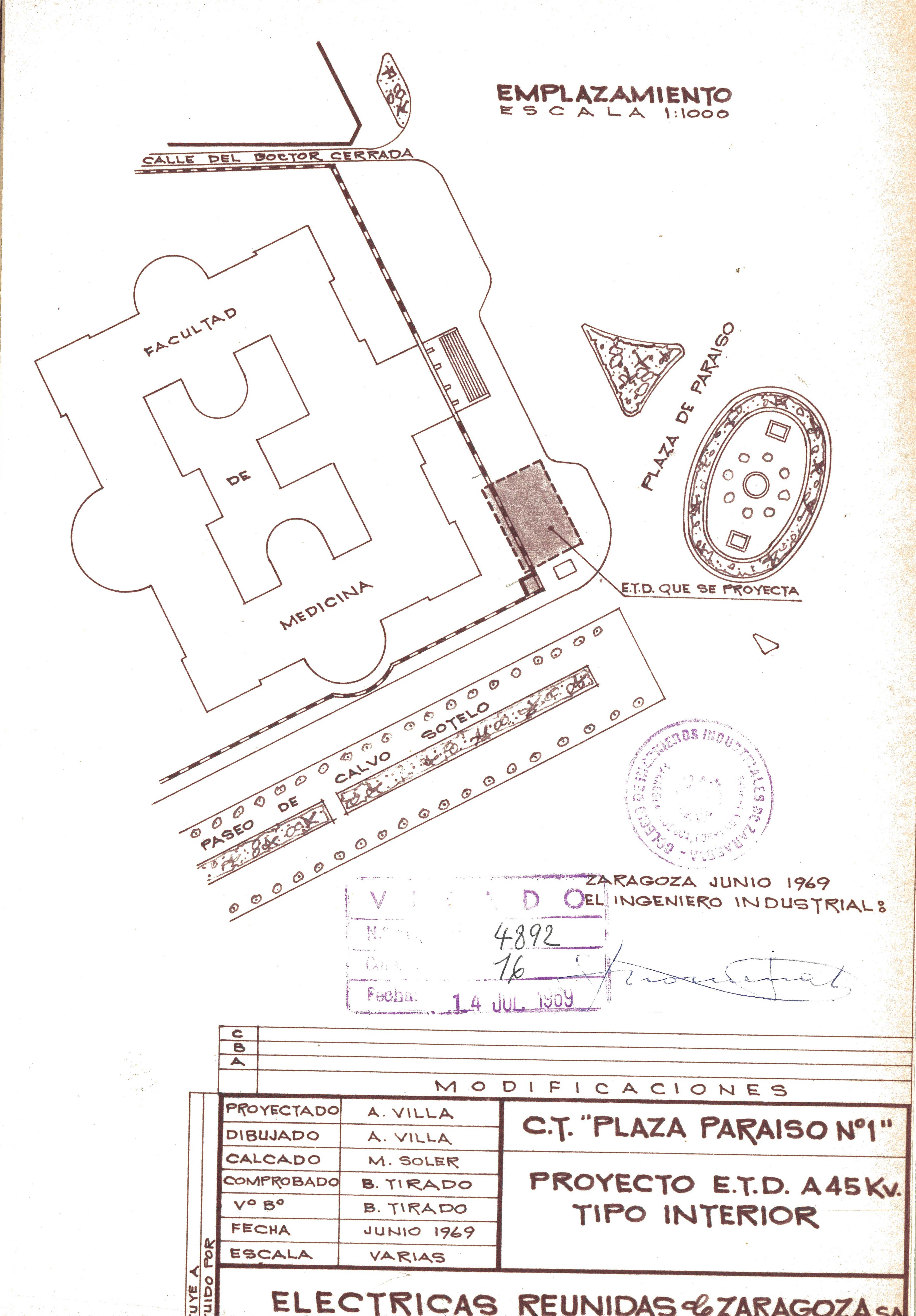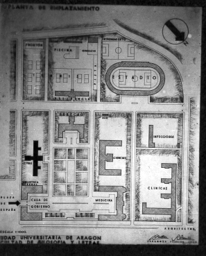 La construcción de un edificio para las facultades de Medicina y Ciencias, hoy conocido como Paraninfo, fue un hito urbanístico en Zaragoza. La elección en 1886 del Campo de Lezcano, junto al río Huerva, en una zona sin urbanizar, conllevó una fuerte transformación de nuestra ciudad. A lo largo del siglo XX, el entorno de la plaza Paraíso vivió importantes transformaciones, como el soterramiento del Río Huerva y la expansión urbanística. Varios planos, pertenecientes a proyectos y obras del edificio Paraninfo conservados en el Archivo Universitario, dan cuenta del pasado, como la denominación del Paseo de Calvo Sotelo, hoy Gran Vía de Santiago Ramón y Cajal.